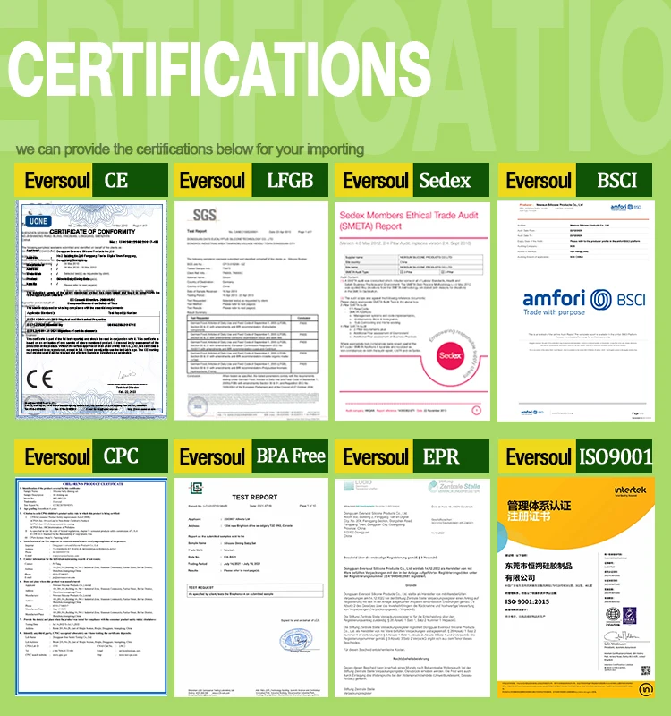 Dongguan Eversoul Silicone Products Co..Ltd is an ISO 9001:2015 、BSCI and Sedex certificated manufacturer with employees around