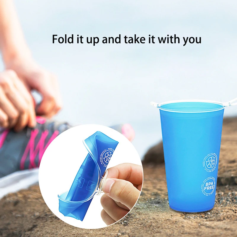HOT Foldable Cups Drinking Cups. 200ML Water Cup With Handle. 200ML BPA Free TPU Collapsible Soft Plastic Sports Water Bottle
