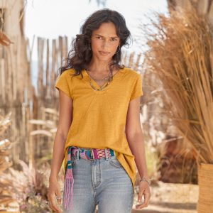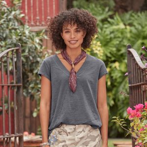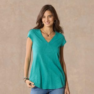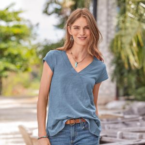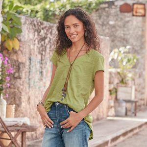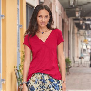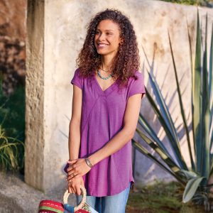 Comfy every day. this tee boasts subtle. directional seaming that flatters. V-neck and rounded. hi-lo hem. Cotton slub. Machine wash. Imported. Sizes XS (0-2). S (4?C6). M (8?C10). L (12?C14). XL (16-18). XXL (20?C22). Approx. 29.75l.