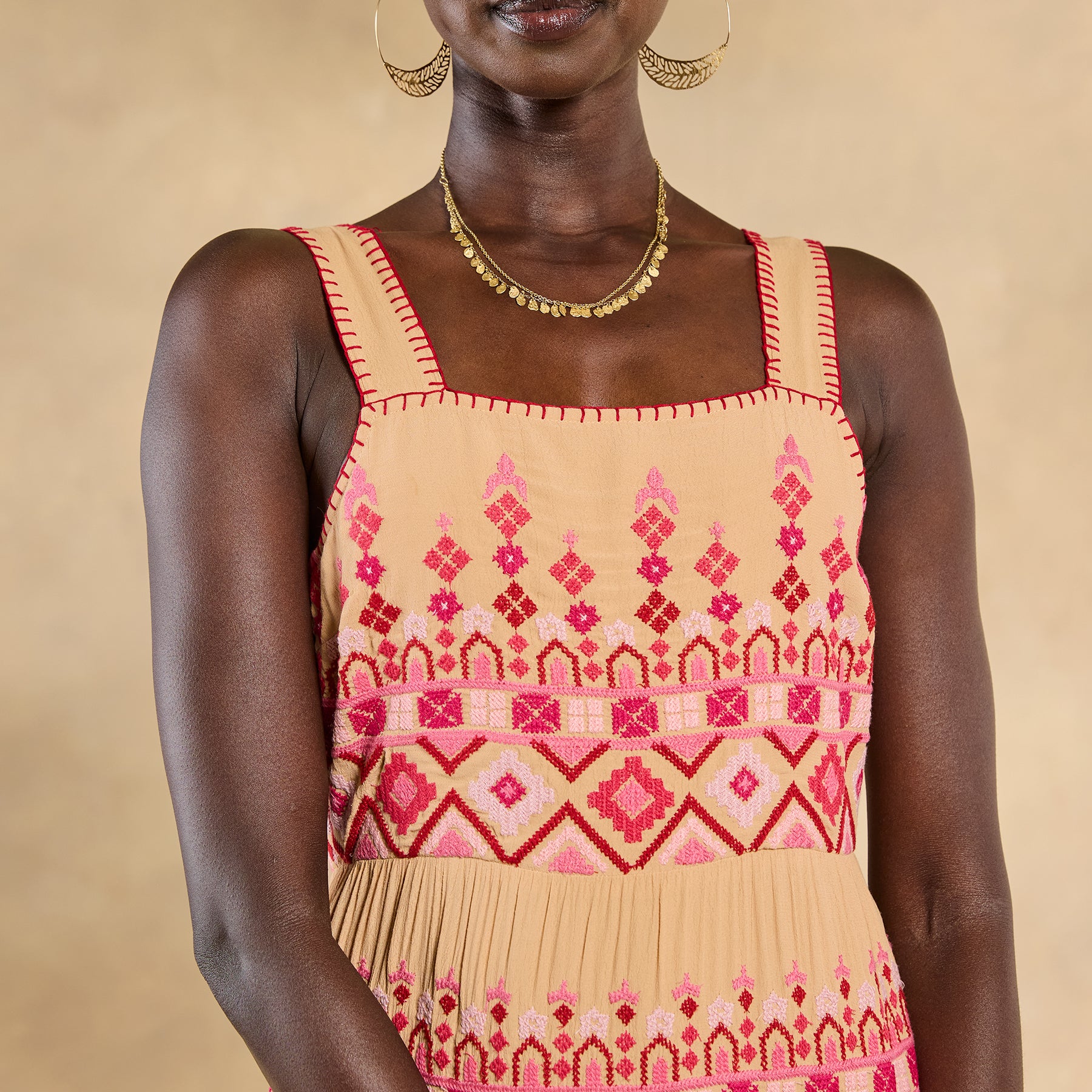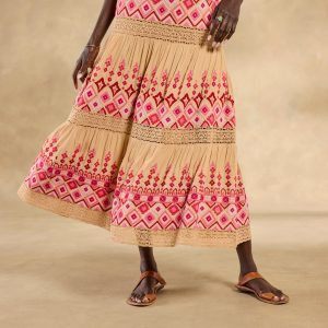 From spring days through summer nights and beyond. you’ll reach for our Garden Sunset Dress again and again! Sundown shades of pink. coral and yellow brighten a neutral background??with intricate all-over embroidery. lace insets throughout. decorative strap stitching and a center back zipper. Viscose/cotton/poly. Hand wash. Imported. Exclusive. Sizes XXS (00). XS (0?C2). S (4?C6). M (8?C10). L (12?C14). XL (16?C18). Approx. 49.5l.